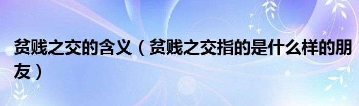 大家好,小安来为大家讲解下。贫贱之交的含义,贫贱之交指的是什么样的朋友很多人还不知道,现在让我们一起来看看吧!