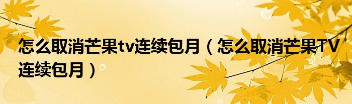 大家好,小安来为大家讲解下。怎么取消芒果tv连续包月,怎么取消芒果TV连续包月很多人还不知道,现在让我们一起来看看吧!
