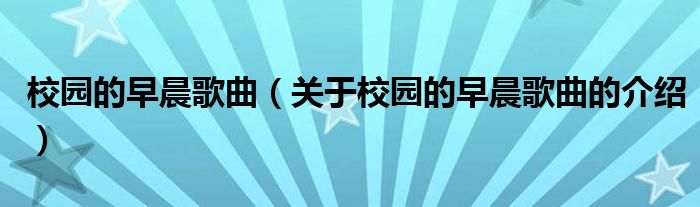 大家好,小安来为大家解答以上的问题。校园的早晨歌曲,关于校园的早晨歌曲的介绍很多人还不知道,现在让我们一起来看看吧!