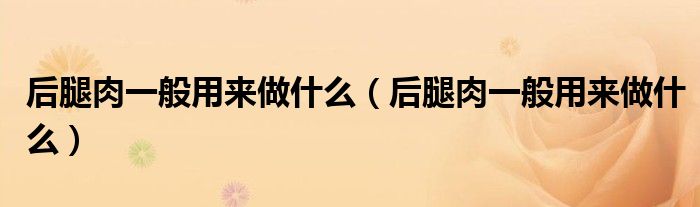 大家好,小安来为大家讲解下。后腿肉一般用来做什么,后腿肉一般用来做什么很多人还不知道,现在让我们一起来看看吧!