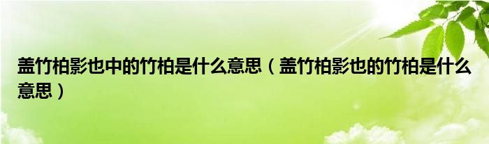 大家好,小安来为大家讲解下。盖竹柏影也中的竹柏是什么意思,盖竹柏影也的竹柏是什么意思很多人还不知道,现在让我们一起来看看吧!