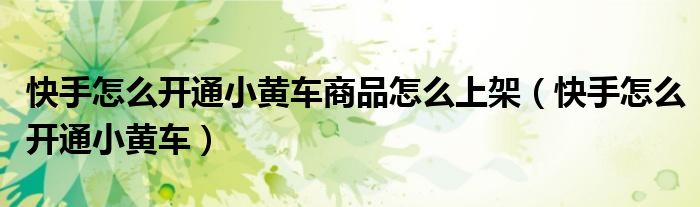 大家好,小安来为大家讲解下。快手怎么开通小黄车商品怎么上架,快手怎么开通小黄车很多人还不知道,现在让我们一起来看看吧!