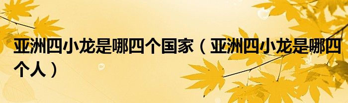 1、 不是四个人。“亚洲四小龙”是指香港、台湾省、新加坡和韩国。