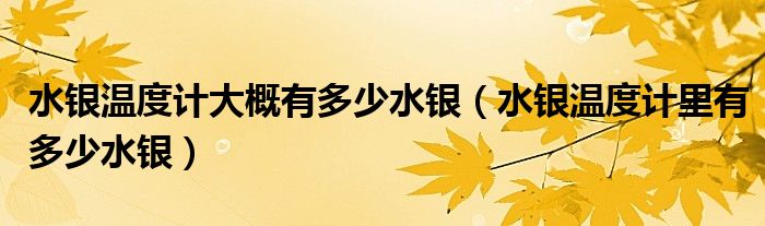 大家好,小安来为大家讲解下。水银温度计大概有多少水银,水银温度计里有多少水银很多人还不知道,现在让我们一起来看看吧!