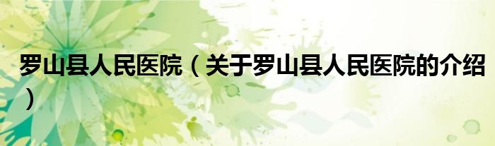 大家好,小安来为大家解答以上的问题。罗山县人民医院,关于罗山县人民医院的介绍很多人还不知道,现在让我们一起来看看吧!