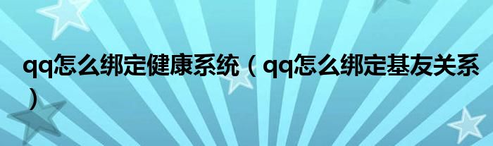 大家好,小安来为大家讲解下。qq怎么绑定健康系统,qq怎么绑定基友关系很多人还不知道,现在让我们一起来看看吧!
