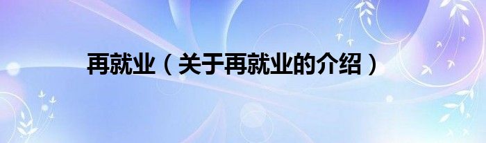 大家好,小安来为大家解答以上的问题。再就业,关于再就业的介绍很多人还不知道,现在让我们一起来看看吧!