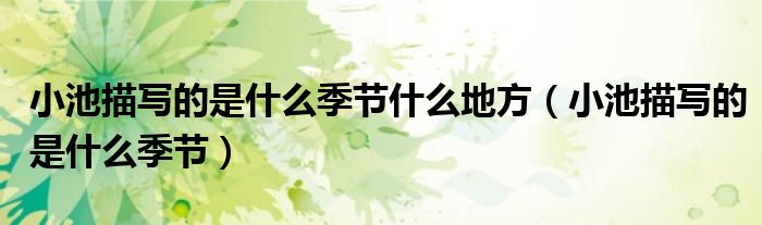 大家好,小安来为大家讲解下。小池描写的是什么季节什么地方,小池描写的是什么季节很多人还不知道,现在让我们一起来看看吧!