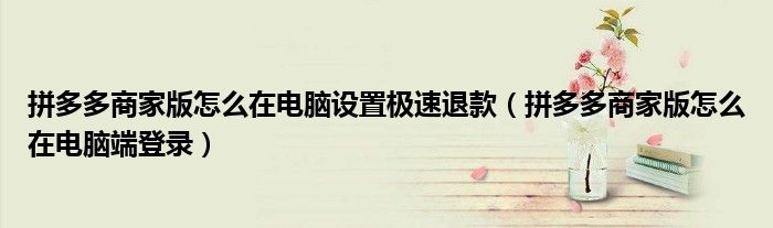 大家好,小安来为大家讲解下。拼多多商家版怎么在电脑设置极速退款,拼多多商家版怎么在电脑端登录很多人还不知道,现在让我们一起来看看吧!