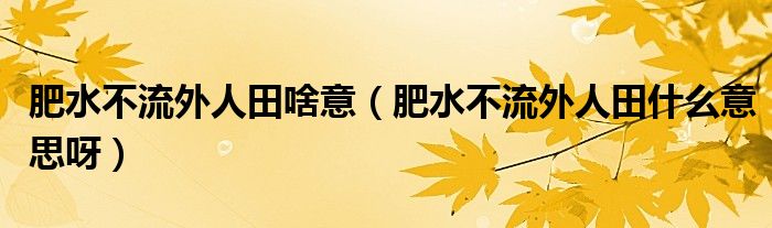 大家好,小安来为大家讲解下。肥水不流外人田啥意,肥水不流外人田什么意思呀很多人还不知道,现在让我们一起来看看吧!
