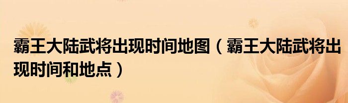 大家好,小安来为大家讲解下。霸王大陆武将出现时间地图,霸王大陆武将出现时间和地点很多人还不知道,现在让我们一起来看看吧!