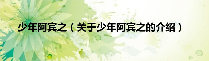 大家好,小安来为大家解答以上的问题。少年阿宾之,关于少年阿宾之的介绍很多人还不知道,现在让我们一起来看看吧!