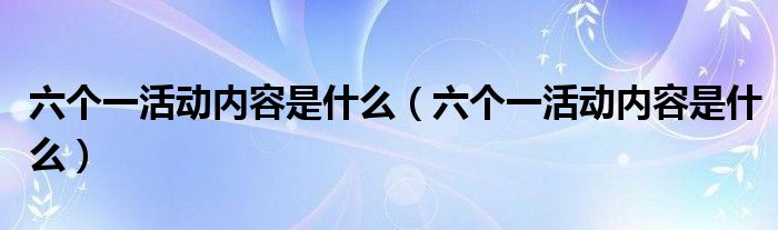 大家好,小安来为大家讲解下。六个一活动内容是什么,六个一活动内容是什么很多人还不知道,现在让我们一起来看看吧!