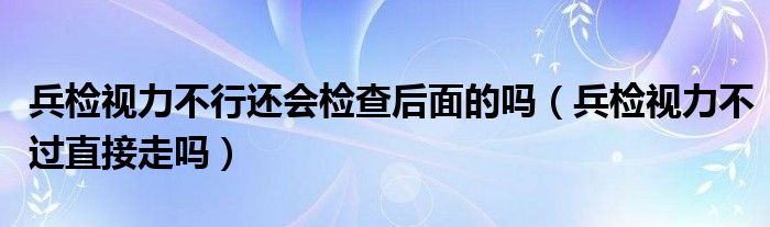 大家好,小安来为大家讲解下。兵检视力不行还会检查后面的吗,兵检视力不过直接走吗很多人还不知道,现在让我们一起来看看吧!