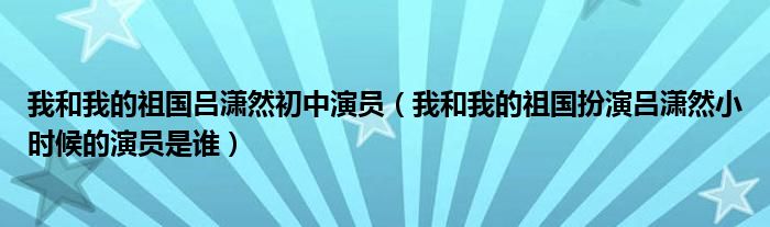 大家好,小安来为大家讲解下。我和我的祖国吕潇然初中演员,我和我的祖国扮演吕潇然小时候的演员是谁很多人还不知道,现在让我们一起来看看吧!