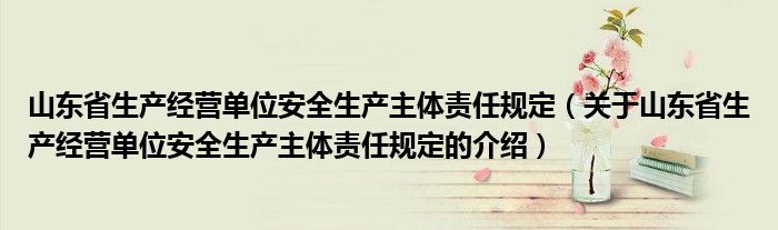 大家好,小安来为大家解答以上的问题。山东省生产经营单位安全生产主体责任规定,关于山东省生产经营单位安全生产主体责任规定的介绍很多人还不知道,现在让我们一起来看看吧!