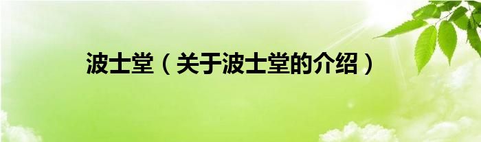 大家好,小安来为大家解答以上的问题。波士堂,关于波士堂的介绍很多人还不知道,现在让我们一起来看看吧!