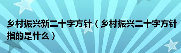 大家好,小安来为大家讲解下。乡村振兴新二十字方针,乡村振兴二十字方针指的是什么很多人还不知道,现在让我们一起来看看吧!