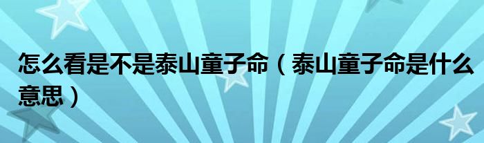 大家好,小安来为大家讲解下。怎么看是不是泰山童子命,泰山童子命是什么意思很多人还不知道,现在让我们一起来看看吧!
