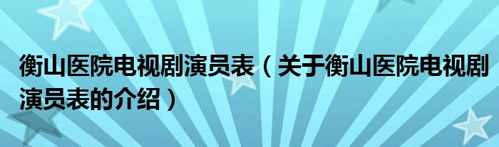 大家好,小安来为大家解答以上的问题。衡山医院电视剧演员表,关于衡山医院电视剧演员表的介绍很多人还不知道,现在让我们一起来看看吧!