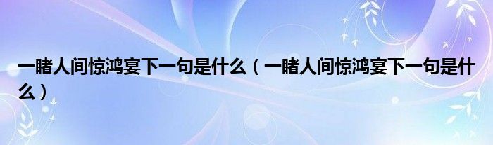 大家好,小安来为大家讲解下。一睹人间惊鸿宴下一句是什么,一睹人间惊鸿宴下一句是什么很多人还不知道,现在让我们一起来看看吧!