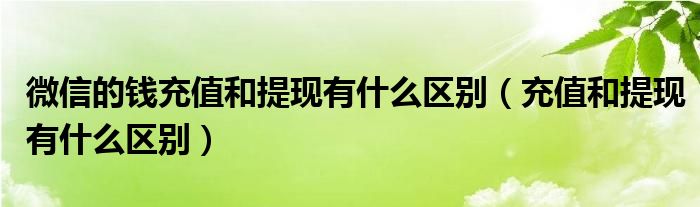 大家好,小安来为大家讲解下。微信的钱充值和提现有什么区别,充值和提现有什么区别很多人还不知道,现在让我们一起来看看吧!