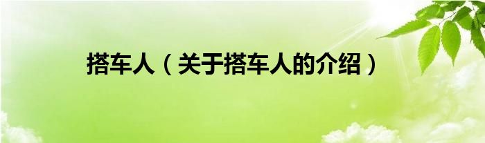 大家好,小安来为大家解答以上的问题。搭车人,关于搭车人的介绍很多人还不知道,现在让我们一起来看看吧!