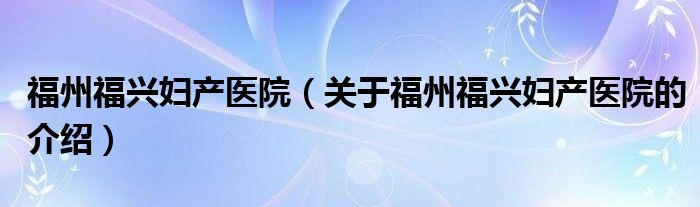 大家好,小安来为大家解答以上的问题。福州福兴妇产医院,关于福州福兴妇产医院的介绍很多人还不知道,现在让我们一起来看看吧!