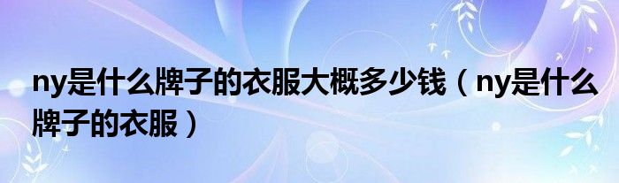 大家好,小安来为大家讲解下。ny是什么牌子的衣服大概多少钱,ny是什么牌子的衣服很多人还不知道,现在让我们一起来看看吧!