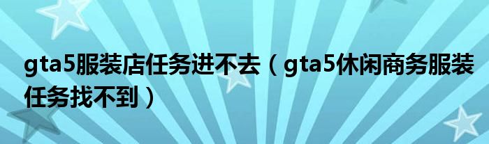 大家好,小安来为大家讲解下。gta5服装店任务进不去,gta5休闲商务服装任务找不到很多人还不知道,现在让我们一起来看看吧!