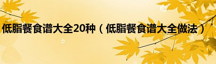 大家好,小安来为大家讲解下。低脂餐食谱大全20种,低脂餐食谱大全做法很多人还不知道,现在让我们一起来看看吧!