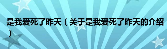 大家好,小安来为大家解答以上的问题。是我爱死了昨天,关于是我爱死了昨天的介绍很多人还不知道,现在让我们一起来看看吧!