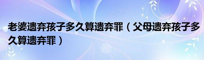 大家好,小安来为大家讲解下。老婆遗弃孩子多久算遗弃罪,父母遗弃孩子多久算遗弃罪很多人还不知道,现在让我们一起来看看吧!