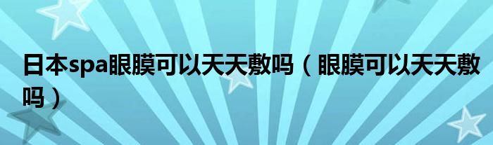 大家好,小安来为大家讲解下。日本spa眼膜可以天天敷吗,眼膜可以天天敷吗很多人还不知道,现在让我们一起来看看吧!