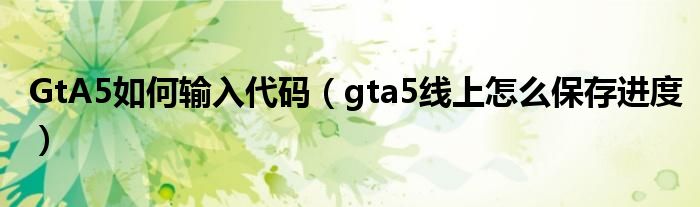 大家好,小安来为大家讲解下。GtA5如何输入代码,gta5线上怎么保存进度很多人还不知道,现在让我们一起来看看吧!