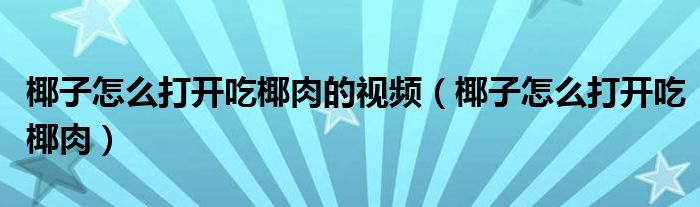 大家好,小安来为大家讲解下。椰子怎么打开吃椰肉的视频,椰子怎么打开吃椰肉很多人还不知道,现在让我们一起来看看吧!