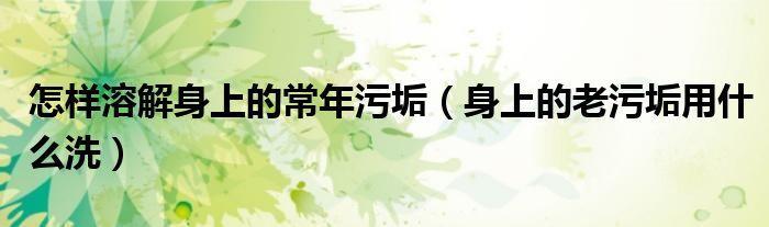 大家好,小安来为大家讲解下。怎样溶解身上的常年污垢,身上的老污垢用什么洗很多人还不知道,现在让我们一起来看看吧!
