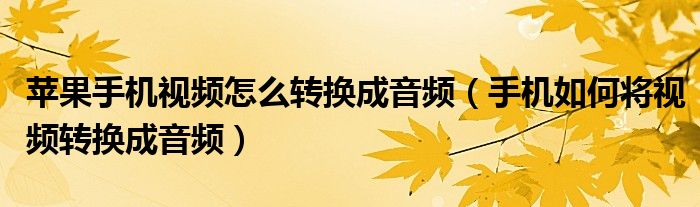 大家好,小安来为大家讲解下。苹果手机视频怎么转换成音频,手机如何将视频转换成音频很多人还不知道,现在让我们一起来看看吧!