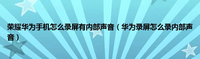 大家好,小安来为大家讲解下。荣耀华为手机怎么录屏有内部声音,华为录屏怎么录内部声音很多人还不知道,现在让我们一起来看看吧!