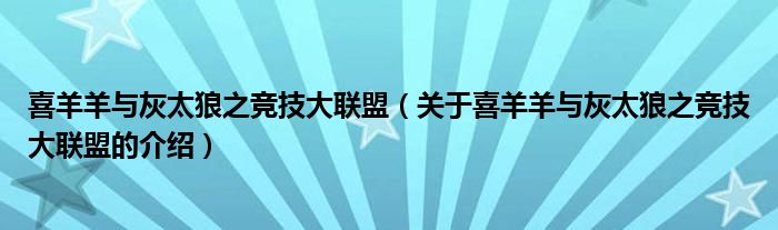 大家好,小安来为大家解答以上的问题。喜羊羊与灰太狼之竞技大联盟,关于喜羊羊与灰太狼之竞技大联盟的介绍很多人还不知道,现在让我们一起来看看吧!