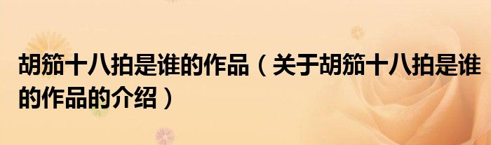 大家好,小安来为大家解答以上的问题。胡笳十八拍是谁的作品,关于胡笳十八拍是谁的作品的介绍很多人还不知道,现在让我们一起来看看吧!