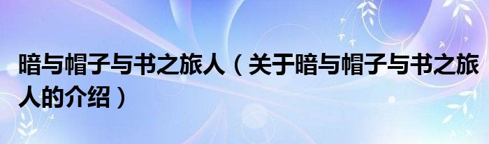 大家好,小安来为大家解答以上的问题。暗与帽子与书之旅人,关于暗与帽子与书之旅人的介绍很多人还不知道,现在让我们一起来看看吧!