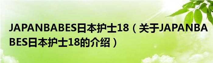 大家好,小安来为大家解答以上的问题。JAPANBABES日本护士18,关于JAPANBABES日本护士18的介绍很多人还不知道,现在让我们一起来看看吧!