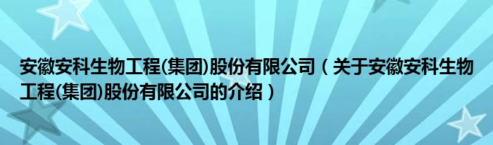 大家好,小安来为大家解答以上的问题。安徽安科生物工程(集团)股份有限公司,关于安徽安科生物工程(集团)股份有限公司的介绍很多人还不知道,现在让我们一起来看看吧!