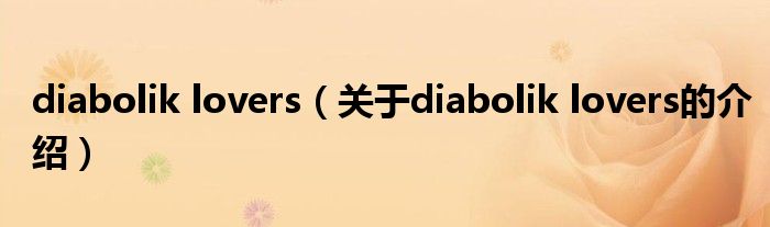 大家好,小安来为大家解答以上的问题。diabolik lovers,关于diabolik lovers的介绍很多人还不知道,现在让我们一起来看看吧!