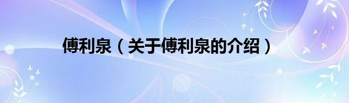 大家好,小安来为大家解答以上的问题。傅利泉,关于傅利泉的介绍很多人还不知道,现在让我们一起来看看吧!