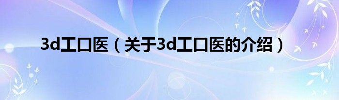 大家好,小安来为大家解答以上的问题。3d工口医,关于3d工口医的介绍很多人还不知道,现在让我们一起来看看吧!