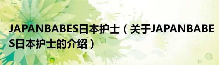 大家好,小安来为大家解答以上的问题。JAPANBABES日本护士,关于JAPANBABES日本护士的介绍很多人还不知道,现在让我们一起来看看吧!
