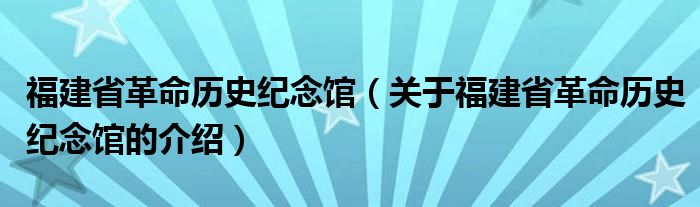 大家好,小安来为大家解答以上的问题。福建省革命历史纪念馆,关于福建省革命历史纪念馆的介绍很多人还不知道,现在让我们一起来看看吧!