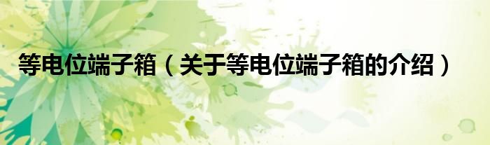大家好,小安来为大家解答以上的问题。等电位端子箱,关于等电位端子箱的介绍很多人还不知道,现在让我们一起来看看吧!